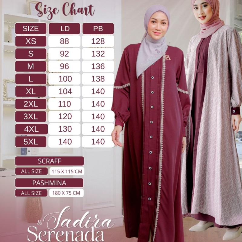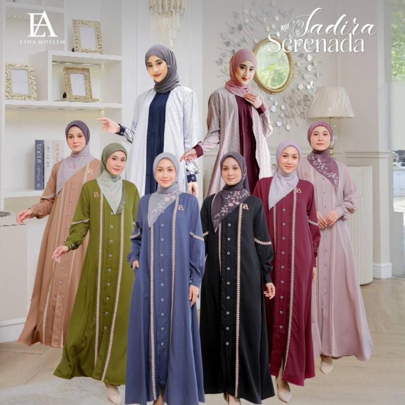 Bismillahirrahmanirrahim SERENADA & SADIRA Open PO 7 - 17 April 2026 SERENADA & SADIRA Persembahan terbaru dari Esha Moslem, 2 gamis cantik dengan desain yang elegan. Serenada dengan hiasan renda yang simple dan Sadira yang menggunakan motif cantik. Keduanya memiliki harga yang sangat terjangkau dengan kualitas yang premium. PILIHAN WARNA SERENADA 1. Black 2. Denim 3. Khaki 4. Milo 5. Mulberry 6. Olive SADIRA 1. Denim 2. Maroon MATERIAL SERENADA menggunakan material ITY NOOM yang insyaallah nyaman, ringan, tidak nerawang, dan adem. SADIRA menggunakan kombinasi bahan JQ MONOGRAM dan PEACH LUX Premium yang ringan, tidak nerawang, dan nyaman saat digunakan. DETAIL SERENADA • Kerah shanghai • Busui friendly terdapat kancing hidup sampai bawah • Terdapat renda simple dibagian depan dan lengan • Lipatan dibagian depan kanan dan kiri • Lengan manset dengan 2 kancing dan dihiasi label plat Esha Moslem • Kantong saku di bagian kanan dress SADIRA • Kerah sanghai • Busui friendly terdapat resleting di bagian dada • Aksen outer dibagian depan yang menyatu dengan dress • Lengan manset dengan kancing dan dihiasi label plat Esha Moslem • Kantong saku di bagian kanan dress SCRAFF • Material Voal Premium • ?Tepi lasercut • ?Tedapat motif logo “EA” di bagian tengah • Kombinasi 2 warna yang berbeda yang dapat digunakan bolak balik dengan motif berbeda di kedua sisinya. • Size 115 x 115 cm PASHMINA • Material Ceruty Premium • Jahit pelipit sekeliling pashmina • Size 180 x 75 cm PRICELIST SPESIAL DISKON 50.000 SERENADA XS - M : 205.000 jadi 155.000 L - 2XL : 215.000 jadi 165.000 3XL - 5XL : 225.000 jadi 175.000 SADIRA XS - M      : 249.000 jadi 199.000 L - 2XL     : 259.000 jadi 209.000 3XL - 5XL : 269.000 jadi 219.000 SCRAFF : 109.000 PASHMINA : 69.000 Jangan sampai ketinggalan PO Serenada & Sadira by Esha Moslem DISCLAIMER Terdapat perbedaan warna antara katalog dan warna asli 5-10% karena efek cahaya dan layar hp masing-masing. #serenada #sadira #eshamoslem #gamiskekinian
