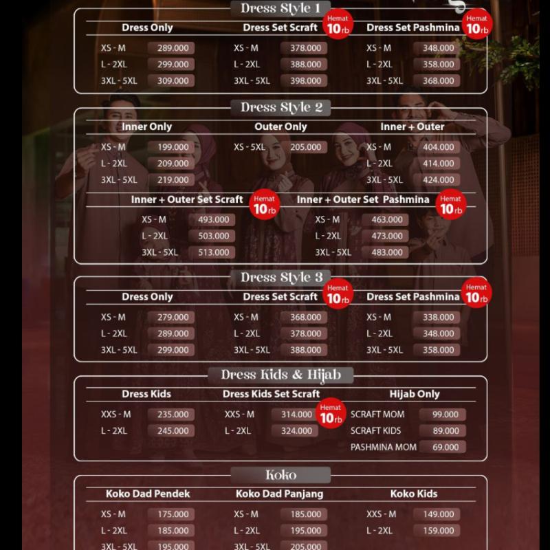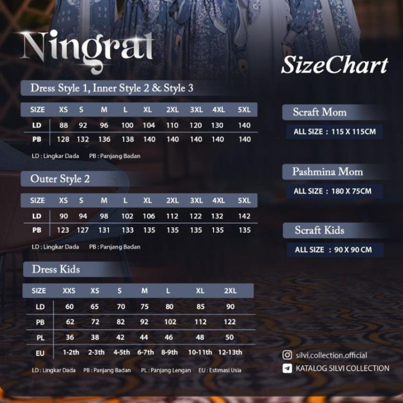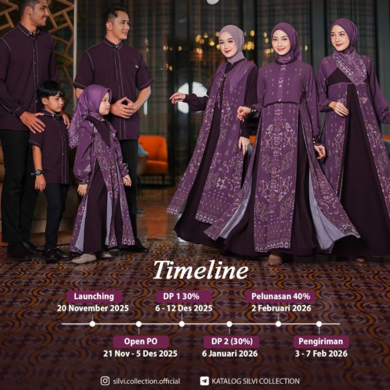 Bismillahirrahmanirrahim NINGRAT Last Family Series by Silvi Collection Open PO 21 November - 5 Desember 2025 NINGRAT Terinspirasi dari keanggunan, Sarimbit Ningrat mengangkat keindahan motif eksklusif dengan paduan warna yang cantik dan desain yang elegan. Nuansa warnanya dibuat soft namun berkelas dan motifnya khas tanpa terasa berlebihan. Sarimbit Ningrat dibuat nyaman dan mampu memberikan aura berkelas. Sarimbit Ningrat hadir untuk setiap momen bersama orang terkasih dengan keanggunan yang tak lekang oleh waktu. PILIHAN WARNA 1. Hollister 2. Indigo 3. Moss Green 4. Onyx 5. Pansy MATERIAL Sarimbit Ningrat menggunakan bahan MELODI (POLOS) yang karakteristik nya ringan, adem, tidak nerawang, menyerap keringat dan nyaman digunakan seharian. Ceruty Premium (Motif Printing) yang ringan dan jatuh. DETAIL NINGRAT DRESS STYLE 1 Kerah shanghai Busui friendly terdapat resleting dibagian dada Bagian dada polos kombinasi motif Lengan manset hidup dengan 2 kancing dan dihiasi label plat Silvi Collection Terdapat motif terbuka dibagian lengan dengan bagian dalam polos Kantong saku dibagian kanan dress Bagian sambungan depan terdapat layer motif yang menyatu dengan dress Bagian belakang polos INNER STYLE 2 Kerah shanghai Busui friendly terdapat resleting dibagian dada Bagian badan polos, lengan motif Lengan manset hidup dengan ruffle kecil dan 2 kancing serta dihiasi label plat Silvi Collection Kantong saku dibagian kanan dress OUTER STYLE 2 Material Ceruty Premium Outer terpisah dengan dress Outer tanpa lengan Terdapat resleting dibagian dada Bagian tengah terdapat list kecil polos 2 belahan terbuka dibagian bawah DRESS STYLE 3 Kerah shanghai dengan hiasan rebah motif dibagian dada Busui friendly terdapat resleting dibagian dada Lengan manset hidup dengan kancing dan dihiasi label plat Silvi Collection Kantong saku dibagian kanan dress Bagian depan terdapat aksen outer motif yang menyatu dengan dress disertai tali Bagian belakang dan lengan polos DRESS KIDS Kerah rebah Terdapat resleting dibagian dada Kombinasi ruflle besar dibagian dada kanan dan kiri Lengan manset hidup dengan kancing dan dihiasi label plat Silvi Collection Terdapat motif terbuka dibagian lengan dengan bagian dalam polos Kantong saku dibagian kanan dress Bagian depan dengan motif belahan terbuka Bagian belakang polos DETAIL KOKO Kerah kemeja Kancing hidup sampai bawah (sembunyi) Kantong saku dibagian dada kiri dihiasi label plat Silvi Collection Terdapat list benang putih timbul yang membuat nampak jenjang/tegak Lengan panjang dengan kancing SCRAFT MOM & KIDS Material voal premium Tepi lasercut Motif serasi dengan dress Terdapat logo plat Silvi Collection PASHMINA MOM Material Ceruty Premium Jahit pelipit sekeliling pashmina Terdapat logo plat Silvi Collection Yuk ikutan PO Ningrat by Silvi Collection DISCLAIMER Terdapat perdedaan warna antara katalog dan warna asli karena efek cahaya dan layar hp masing-masing. Toleransi size 1-2 cm dari Sizechart