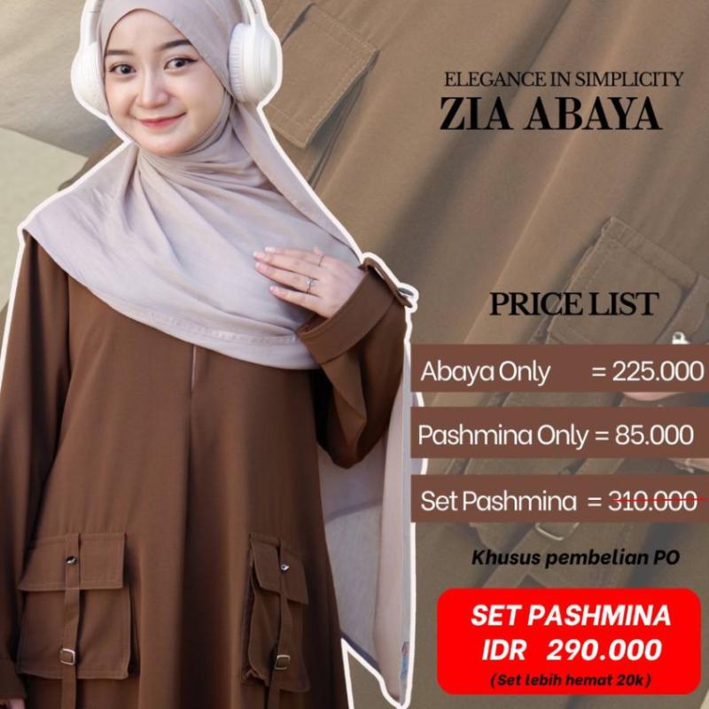 Zia Abaya by @sisterhijabofficial Desain abaya dengan look cargo, pastinya cocok banget dipakai ke acara semi formal dan non formal, terlihat lebih trendy, kekinian dan tetap syar'i *MATERIAL* - Abaya = Sabrina anti UV, bahan premium yang memberikan pelindungan dari sinar UV, tekstur yang halus, flowly, dingin dan tidak mudah kusut - Pashmina = Menggunakan material Viscose premium, teksturnya yang lembut, ringan, flowly, mudah diatur, dan memiliki kilau alami membuat look elegant *DETAIL* - Menggunakan zipper di bagian dada (Busui Friendly) - Cutting abaya loss - Cutting lengan loss, dengan ban turn up yang dihiasi aksen kancing - Terdapat dua saku cargo mode di depan - Pashmina viscose jahit tepi rapi *SIZE CHART* - ABAYA S LD 100 PB 130 M LD 110 PB 138 L LD 120 PB 140 - PASHMINA 175 x 75 cm *PRICELIST* - Abaya only 225.000 - Pashmina viscose 85.000 - Abaya set Pashmina ~310.000~ Promo selama PO hanya 290.000 (Hemat 20.000) Jangan lewatkan PO nya Order melalui mitra @dbsisterhijab