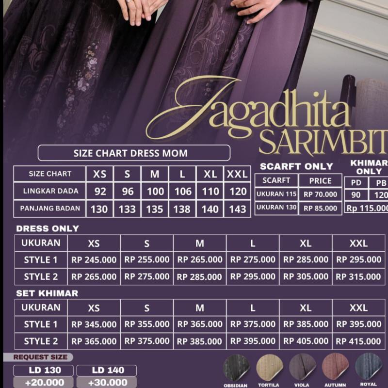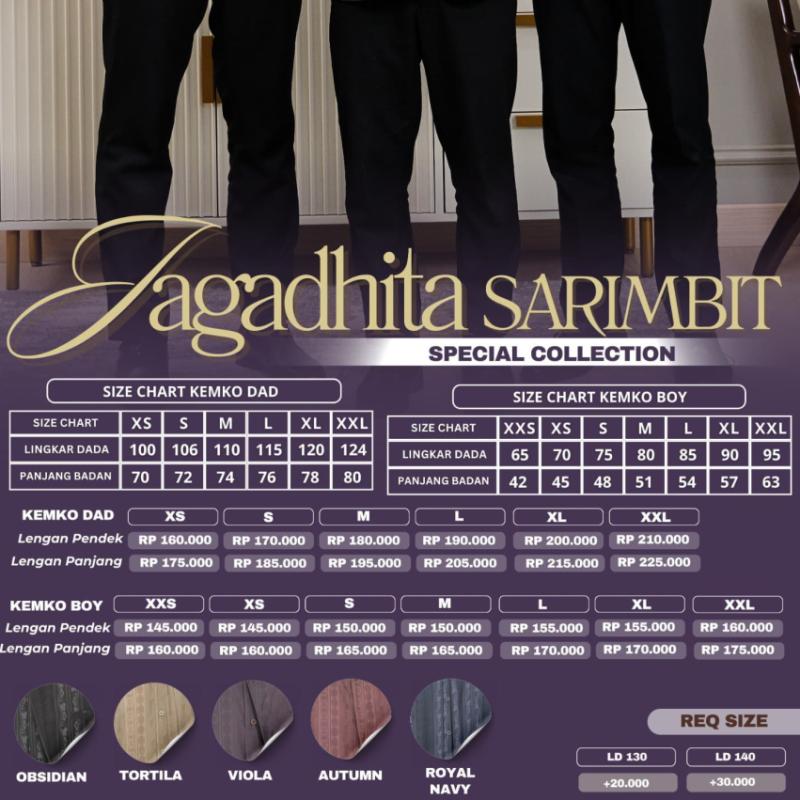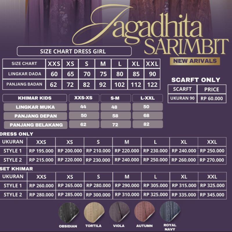 Bismillahirrahmanirrahim.. *SARIMBIT JAGADHITA BY AHSAN X VALEEQA* .l ___ Open Pre Order 30 Oktober - 15 November 2025 Sarimbit Colloborations *AHSAN x VALEEQA* Kalo ngomongin hari raya yang terlintas di pikiran pasti Sarimbit. Sarimbit kali ini sangat spesial karena kami menggunakan material/bahan yaitu *JASMINE TWIL* bahan yang sangan nyaman, adem, kuat, flowly, ketebalan pas, tidak mudah mbrudul dan sangatt Cocok dipakai untuk berbagi acara spesial kamu. Dikombinasi dengan *Ceruty (mom style 2)* Membuat tampilan jadi lebih cantik, elegant dan mewah. Ini tuh motifnya baguss, unik, 2tone gradasi gitu.Beneran cakep Sarimbit yang akan dipakai terus menerus karena modelnya yang tidak too much jadi cocok dipakai di segala suasana. Untuk dad dan boy kami buat model kemeja agar bisa di pakai di acara resmi ataupun ke kantor. *Spesifikasi* *Dress Style 1* Resleting depan (busui friendly) Cutting abaya tanpa potongan pinggan Bagian pundak lengan balon Terdapat saku di kanan Tangan manset kancing 2 Kerah sanghai *Dress Style 2* Resleting depan (busui friendly) Cutting abaya tanpa potongan pinggan Kombinasi ceruti pada bagian belahan samping Bagian pundak lengan balon Terdapat saku dikanan Tangan manset kancing 2 Kerah sanghai *Kemeja* kancing full hidup dari atas ke bawah kerah sanghai saku di dada kanan tersedia lengan panjang dan pendek untuk kemeja Dad. Untuk kemeja boy hanya tersedia lengan pendek *Scarf* Menggunakan bahan Voal Printing tersedia : *Size Dewasa* 115×115 dan 130x130 *Size Anak* 90x90 *Khimar Only* Mom Kids Tersedia 5 warna pilihan Autumn Obsidian Royal Navy Tortila Viola Size Chart dan Pricelist ada di Flayer tersendiri Yuk tampil cantik bersama Jagadhita Dress di setiap momentmu *DISCLAIMER* Disclaimer : Mohon diikhlaskan selisih size 2-3 cm dikarenakan proses Cutting dan Jahit masal Warna asli lebih gelap dikarenakan foto outdoor dan cahaya lebih terang Perbedaan warna 10-20% dari tingkat cahaya karena resolusi masing-masing hp Happy shopping