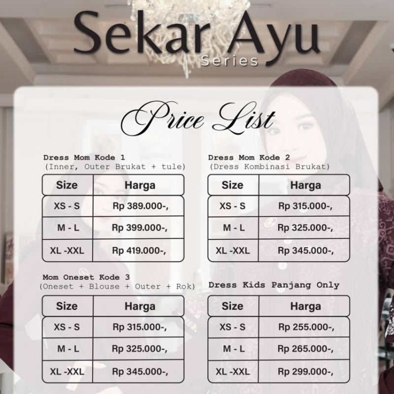 Bismillahirrahmanirrahim…. SEKAR AYU SERIES By Kamila kids special for Eid EXTRA-TIME 23-17 NOVEMBER 2025 Terdapat 05 pilihan warna: 1. ONYX 2. BRIGHT WHITE 3. BURGUNDY 4. MAHOGANY 5. MOONLIGHT BLUE MATERIAL & DETAIL : MATERIAL * *FORTALEZA* (Kain Dasar Dress dan jilbab kids, Kemeja) Menggunakan bahan Premium. Bahan ini memiliki tekstur lembut, adem, jatuh dan tidak mudah kusut. * *TILE* (Untuk kombinasi dress mom & kids kode 1) Karakteristik lembut elastis, tidak mudah kusut dan pastinya tidak gatal. * *BRUKAT SAPTA ETNIK* (Kombinasi Dress dan Outer)* Kain brokat memiliki karakteristik yang tidak mudah kusut, terkesan mewah dan elegan. •*SCARFT PRINTING* Didesain khusus dengan material pilihan. Karakteristik lembut mudah di stylis, terdapat lasercut di bagian tepi. *DETAIL SPESIFIKASI* *DRESS MOM KODE 1 (Inner kombinasi tule + Outer Brukat)* *Inner:* - Menggunakan kerah bulat - Busui friendly (Resleting bagian depan) - ?Terdapat saku dalam sebelah kanan kanan - Wudhu friendly (menggunakan kancing hidup di bagian mangset) - ?Terdapat metal tag Kamila kids di mangset tangan sebelah kanan - Terdapat rufle pada pundak agar tampilan lebih elegant *Outer Brukat:* - Terdapat tali yang menyatu pada kerah - ?Corak brukat yang rapih dan mewah - Sleeveleess (lekbong) *DRESS MOM KODE 2 (Inner + Outer Menyatu)* - Kombinasi brukat bagian depan dan lengan - Menggunakan kerah bulat - ?Wudhu Friendly (resleting bagian depan dan terdapat variasi kancing sebagai hiasan) - ?Metaltag Kamila Kids pada dada sebelah kiri - ?Terdapat saku dalam sebelah kanan - ?Terdapat kerut melingkar dan rufle pada lengan sehingga tampilan makin manis *ONE SET MOM KODE 3 (One set - Blouse + Outer + Rok)* *Detail Blouse :* - Menggunakan kerah sanghai - ?Terdapat ruffle bagian lengan - Busui friendly (kancing hidup bagian depan) - Wudhu friendly (menggunakan mangset kancing) *Detail Outer :* - Menggunakan brukat - ?Menggunakan lengan flutter sleeve - Menggunakan kerah shawl collar - ?Terdapat kancing hidup bagian depan (busui friendly) *Rok:* - Menggunakan pinggang full karet sehingga elastis - ?Full brukat dan disertai furing *DRESS KIDS PANJANG* *Inner:* - Menggunakan kerah bulat - Terdapat resleting bagian depan - ?Terdapat saku dalam sebelah kanan kanan - Wudhu friendly (menggunakan kancing hidup di bagian mangset) - ?Terdapat metal tag Kamila kids di mangset tangan sebelah kanan - Terdapat rufle pada pundak agar tampilan lebih elegant *Outer Brukat:* - Terdapat tali yang menyatu dengan kerah - ?Corak brukat yang rapih dan mewah *Scarft Mom* * Full Motif * Finishing tepi laser cut * Size chart 115x 115 cm * Berat scraf 100gram per 1pcs * Terdapat metal tag KAMILA KIDS disalah satu sudut scarft *Khimar Kids* - Menggunakan kain Fortaleza - Menggunakan non pet - Desain cutting V menggunakan 1 layer - Metal tag Kamila Kids pada bagian depan *Detail Kemeja Dad & Kids* (Pendek & Panjang) . Menggunakan Kerah Kemeja . Full kancing hidup .Terdalat kombinasi brukat pada dada kanan dan kiri . Saku pada samping kanan .Terdapat kancing pada mangset tangan untuk kemeja lengan panjang yang mempermanis tampilan . Terdapat Metal Tag Kamila kids SIZE CHART DRESS MOM KODE 1 *(Inner kombinasi tule + Outer brukat)* XS LD 85 PJ 125 S LD 90 PJ 130 M LD 95 PJ 135 L LD 100 PJ 138 XL LD 104 PJ 140 XXL LD 110 PJ 140 REQ SIZE 3XL LD 120 PJ 140 4XL LD 130 PJ 140 5XL LD 140 PJ 140 *Outer* XS LD 85 PJ 95 S LD 90 PJ 100 M LD 95 PJ 103 L LD 100 PJ 103 XL LD 104 PJ 105 XXL LD 110 PJ 105 REQ SIZE 3XL LD 120 PJ 105 4XL LD 130 PJ 105 5XL LD 140 PJ 105 SIZE CHART DRESS MOM KODE 2 XS LD 85 PJ 125 S LD 90 PJ 130 M LD 95 PJ 135 L LD 100 PJ 138 XL LD 104 PJ 140 XXL LD 110 PJ 140 REQ SIZE 3XL LD 120 PJ 140 4XL LD 130 PJ 140 5XL LD 140 PJ 140 SIZE CHART ONE SET MOM KODE 3 (One set - Blouse + Outer + Rok) *Inner* XS LD 85 PJ 75