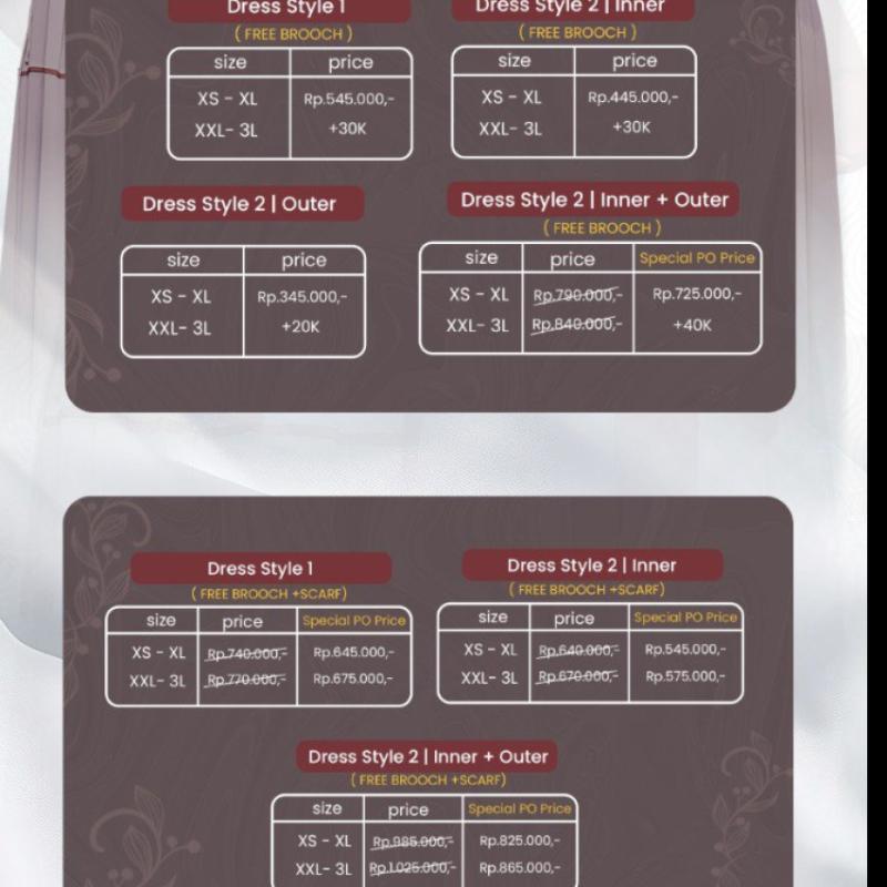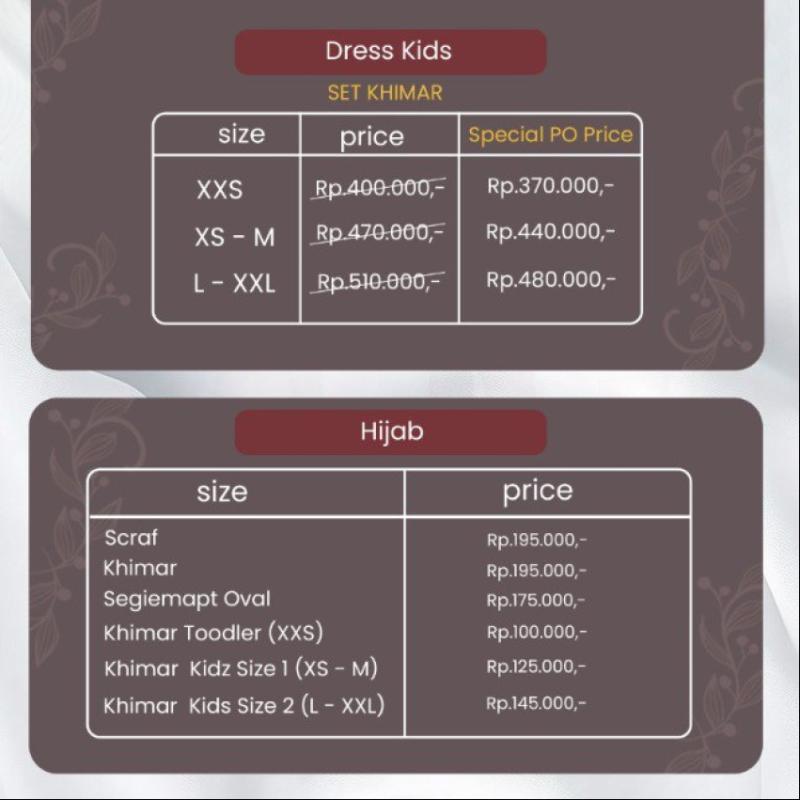AMERTA LAKSMI FAMILY SERIES 2026 by @a.d.e.n_hijab Open Pre-Order: 25 – 03 Desember 2025 Setiap momen kebersamaan layak diabadikan. “Amerta” berarti keabadian, “Laksmi” melambangkan keanggunan dan keseimbangan — dua makna yang menyatu dalam Amerta Laksmi Family Series, sarimbit terakhir Aden Hijab tahun ini. Dirancang dengan siluet rapi, detail lembut, dan warna netral yang menenangkan, koleksi ini bukan sekadar busana, tapi kisah keluarga yang ingin terus dikenang. Amerta Laksmi — timeless elegance, keanggunan yang tak pernah berakhir. ? Material Produk ? Olfara? Halus, ringan, lembut, dan nyaman dipakai. Lustrine ? Kain jaring transparan dengan bordir rapi berbenang kilap dan motif timbul yang memberi tekstur mewah. Ceruty Baby Doll ? Lembut, jatuh, berserat halus dengan tekstur seperti butiran pasir. Velvet Voal ? Halus, ringan, lembut, dan nyaman dipakai. Spesifikasi Produk DETAIL STYLE 1- DRESS MOM * Bahan: Olafara * Krah: Shanghai * Bukaan: Ritsleting depan (busui-friendly) * Variasi outer menyatu dengan dress * Outer dilengkapi renda dan kancing depan * Lengan balon * Manset dilapisi bordir monogram Aa dan variasi ruffle dengan bukaan (wudhu-friendly) * Saku di sisi kanan * Metal tag A.D.E.N * Free Brooch DETAIL STYLE 2 - INNER * Bahan: Olafara * Krah : Shanghai * Bukaan : Ristleting depan (busui-friendly) * Terdapat lipit hadap di bawah ristleting * Lengan balon dengan kerut, ruffle dan bukaan di bagian kancing di manset (wudhu-friendly) * Saku: di samping kanan dress * Metal tag A.D.E.N * Free Brooch DETAIL STYLE 2 - OUTER * Bahan: Ceruty Baby Doll * Outer lepasan dengan garis leher bulat * Variasi potongan dan kerut di bahu * Bukaan kancing depan * Variasi brukat Aa Monogram * Tali serut di pinggang * Potongan plaket di bagian bawah DRESS KIDS LENGAN PANJANG * Bahan: Olafara * Garis leher bulat * Bukaan ritsleting depan * Variasi outer menyatu dari bahan Ceruty Baby Doll * Lengan balon dengan kerut di bagian atas dan bawah * Manset kerut dengan bukaan kancing (wudhu-friendly) * Saku di sisi kanan * Metal tag A.D.E.N DRESS KIDS LENGAN PENDEK * Bahan: Olafara * Garis leher bulat * Bukaan ritsleting di belakang * Potongan depan dengan variasi kerut dan pita * Lengan lingkar dengan variasi brukat Aa Monogram * Saku di sisi kanan dress * Metal tag A.D.E.N KOKO LENGAN PENDEK & PANJANG * Bahan: Olafara * Tersedia dalam dua varian: lengan pendek & lengan panjang untuk Koko Dad dan Koko Kids * Krah: Shanghai * Plaket tertutup dengan full kancing hingga bawah * Saku dalam di sisi kiri dada * Khusus varian lengan panjang dilengkapi manset dengan bukaan kancing (wudhu-friendly) * Detail belakang: Yoke dan lipit hadap untuk tampilan rapi dan elegan * Metal tag A.D.E.N HIJAB SERIES Scarf * Bahan: Velvet Voal * Motif: Pattern asli by @a.d.e.n_hijab * Tepi: Laser cut rapi dengan detail titik tiga * Ukuran: 115 x 115 cm * Metal tag Aa * Packaging: Scarf only ? Soft Box Set Dress ? Goodiebag SEGIEMPAT OVAL * Bahan: Ceruty Baby Doll * Ukuran: 120 x 120 cm * Aksesori: Metal tag A.D.E.N di ujung segiempat BERGO KIDS * Bahan: Ceruty Baby Doll * Ukuran: -Toddler (XXS) -Size 1 (XS–M) -Size 2 (L–XXL) * Fitur: Tanpa pad * Tali kanan–kiri * Aksesori: Metal tag & label A.D.E.N di ujung depan DETAIL UMUM Pilihan Warna (5 varian elegan): * Dark Crimson * Heliotrope * Indian Tan * Nature Black * Straw Item Terjual & Price List: Tersedia di akun katalog resmi @aden_katalog_pusat Size Chart: Dapat dilihat melalui @aden_katalog_pusat Berat Produk: Informasi lengkap tersedia di @aden_katalog_pusat Packaging: Goodiebag ? Untuk semua dress (termasuk set scarf) Soft Box ? Untuk pembelian scarf only