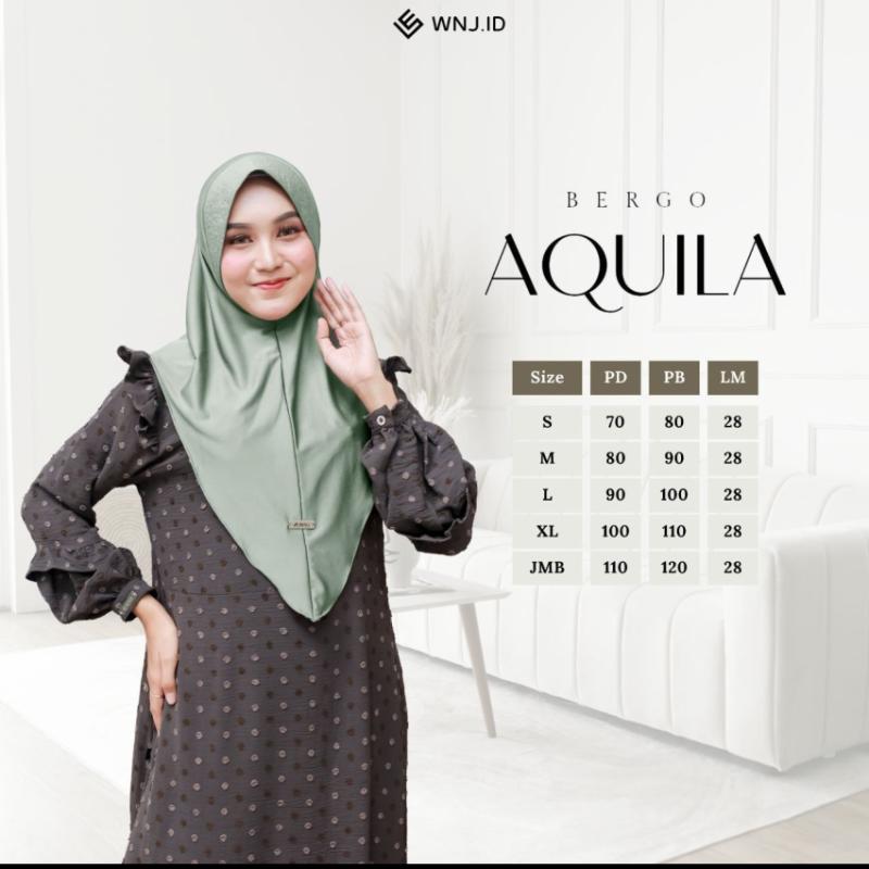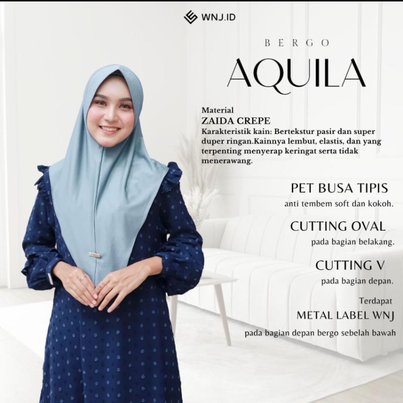 BERGO AQUILA Bismillahirrohmanirrohim.... MasyaAllah tabaarokallah Get ready for this new Bergo. "BERGO AQUILA". New Bergo dengan look yang super fine for your daily wear is coming. Bergo ini terbuat dari bahan yang paling best-seller di WNJ.CO.ID yaitu "Kain Zaida Crepe". Kainnya ringan, lentur, menyerap keringat, gak nyeplak dan uademnya kebangetan. Siap-siap diserbu dengan warna-warni cantik Bergo Aquila ini ya dear... And choose your favourite color soon! Bergo Aquila Best Price S - M : 81rb L - XL: 91r Jumbo: 101rb When you see this bergo, akuilah kalau Bergo Aquila ini manis. Designnya keceh abiz! Girly and eye catching. Bergo ini terbuat dari bahan "Zaida Crepe". Bahan ini sudah masyhur di kalangan WNJ Lovers. Bahan yang selalu ditanyakan dan dinantikan karena kenyamanannya. Kainnya ringan, lembut, empuk, tidak menerawang, menyerap keringat, adem dan nyaman! Produk dengan bahan ini highly recomended for your daily wear. 10 pilihan warna bergo ini siap menemanimu beraktifitas sehari-hari. So, decide your color and grab it at WNJ Partner! Details: Bahan: Zaida Crepe Karakteristik kain: Bertekstur pasir dan super duper ringan. Kainnya lembut, elastis, dan yang terpenting menyerap keringat serta tidak menerawang. Cocok di pakai sehari-hari. Design: Bergo Instan dengan pet busa tipis yang anti tembem. Petnya soft dan kokoh. Bergonya adem dan nyaman dipakai sehari-hari. Cutting oval pada bagian belakang. Looknya trendy dan membuat tampilan makin Elegant. Cutting V pada bagian depan. Simple, cantik dan membuat tampilan makin girly. Terdapat Metal Tag Sign WNJ pada bagian depan bergo sebelah bawah, membuat bergonya jadi tambah classy and exclussive. Terdapat 15 pilihan warna yang menarik: 1. Black 2. Midnight Blue 3. Red Mahogani 4. Soft Lavender 5. Peach Rose 6. Soft Choco 7. Honey Ginger 8. Oddysey Grey 9. Dark Sage Green 10. Dusty Purple 11. White 12. Lime  13. Baby Blue  14. Sage 15. Milo Size Chart & Berat Item: • S:   PD 70 PB 80 LM 28 (150gr) • M:  PD 80 PB 90 LM 28 (200gr) • L :   PD 90 PB 100 LM 28 (250gr) • XL: PD 100 PB 110 LM 28 (300gr) • JMB: PD 110 PB 120 LM 28 (350gr) Packaging menggunakan plastik eco green yang ramah lingkungan. • Disclimer Size : 2-3 cm • Disclimer color : Hasil pencahayaan pada saat pemotretan serta resolusi kamera ataupun HP yang digunakan bisa mempengaruhi tampilan pada hasil foto. #bergo #bergoaquila #zaidacrepe #wnj #goodnessintogetherness