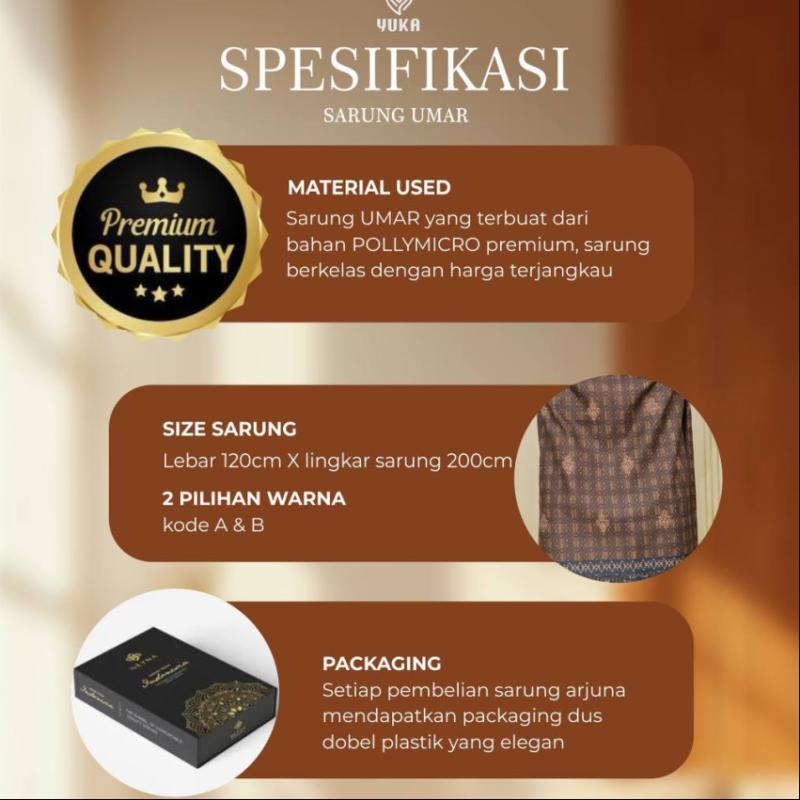 Assalamualaikum, Bismillah... Yang  bingung cari sarung harga affordable, bisa di bagi in tahlilan, hampers lebaran, atau di buat souvenir MANTESI COCOK ini dia.... SARUNG TERBARU DARI YUKA UMAR SERIES Series sarung pertama dari Yuka yang bisa membersamai paksu saat pergi ke masjid, yuk kenalan lebih dekat   Ukuran : ukuran -+ lebar 120cm lingkar sarung 200cm Berat : -+ 250 gr jumbo pun masuk. TERSEDIA DUA WARNA Bahan: pollymicro Karakter: ketebalan pas, tidak terawang, adem, nyaman dipakai, tidak mudah kusut Spesifikasi: -Motif Etnik kekinian, motif berkelas -100% bahan tidak kusut saat dicuci Best price : 69.000 kualitas bagus gak murahan. Cocok untuk dijadikan hampers, buat shalat 5 waktu, shalat tarawi, shalat Idul Fitri, dan kegiatan lainnya biar nyaman. 100% setelah di cuci gak mengkerut walau di sikat..bahan gak ambyar ketika di serut kuku karana benang nya padet... pokok nya nyaman di pake #sarungumaryuka