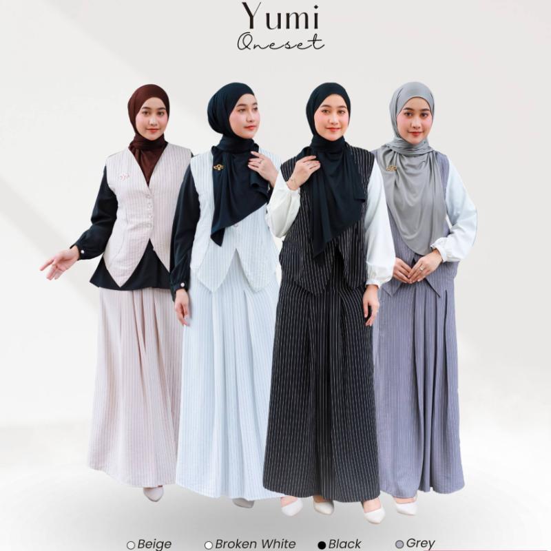 menghadirkan 3 style yang menunjang penampilan kamu, dipadukan dengan desain minimalis modern dengan sentuhan elegan yang memancarkan pesona feminin dan berkelas. Perpaduan antara garis lembut dan warna-warna netral menjadikan tampilannya anggun namun tetap praktis untuk gaya muslimah masa kini. dirancang untuk memberikan kenyamanan maksimal dengan tampilan yang tetap syar’i dan modis di berbagai moment. hadir dalam 4 pilihan warna eksklusif yang elegan : Beige Broken White Grey Black Material Abaya dan Oneset : Soft Linen Jenis kain berbahan dasar serat alami linen yang dibuat dengan proses khusus, sehingga teksturnya lebih halus, lembut, dan ringan serta nyaman saat dikenakan. Material Blouse : Sabrina Material yang memiliki serat padat dan flowly membuatnya nyaman saat dikenakan, meskipun terkesan flowy tetap cocok dipakai untuk outfit yang anggun dan elegan Material Pashmina Oval : Rayon Kaos Super Material dengan ketebalan pas untuk pashmina, stretch, menyerap keringat, nyaman dipakai, serta mudah di styling Yumi Abaya Terdapat zipper aktif pada bagian dada sehingga busui friendly. Desain saku kanan kiri, saku friendly. Detail lengan dengan kombinasi aksen tiga kancing mati dan zipper aktif sehingga wudhu friendly. Desain loose abaya tanpa kupnat dan variasi flui pada bagian depan. Model desain batwing menjadikan looks terlihat lebih syar'i. Dengan penggunaan material hampir 2x lebih banyak dari gamis biasa. Memiliki lebar bawah rok yang cukup sehingga membuat lebih anggun. Yumi Oneset Lengan sleeveless yang mempercantik tampilan vest. Aksesoris 3 kancing exclusive yg mempermudah pemakain. Kerah V yang mempermanis tampilan Cuttingan V pada bagian bawah yang bikin tampilan slim. Nyaman dengan karet dibagian belakang. Terdapat zipper pada bagian kanan rok yg memudahkan saat memakainya. Rok bentuk A yang mempermanis tampilan. Aksen semi plisket pada bagian depan kanan rok yg bikin tampilan fresh. Dipermanis dengan aksen 3 kancing pada bagian kiri rok. Yumi Blouse Cutting siluet lurus (relaxed fit) sehingga looks terlihat fresh. Model kerah round neck (kerah bulat sederhana, tanpa lipatan) Full kancing aktif model diamond yang mempercantik tampilan. Cutting V pada dada depan dan dipermanis dengan lipitan, bikin looks semakin cantik. Lengan manset dengan 1 kancing aktif. Yumi Pashmina Oval Cutting belakang oval sehingga nyaman di pakai. Jahit tepi eksklusif, lebih rapi dan kokoh. Mudah untuk di styling syari dan stylish. Yumi Dress (LD / PB / PL) S : 130/135/65 M : 140/140/65 L : 150/145/68 Yumi Vest (LD / (PB depan/PB belakang) / Ketiak) : S : 95 / (63/50) / 49 cm L : 105 / (67/53) / 53 cm XXL : 120 / (70/55) / 58 cm Yumi Rok (Panjang rok / Pinggang / Karet) : S : 95 / 75 / 34 cm L : 98 / 85 / 38 cm XXL : 103 / 95 / 42 cm Yumi Blouse (LD / PB / PL) S : 95/67/57 M : 100/69/58 L : 105/71/59 XL : 110/73/60 XXL : 120/75/60 Yumi Pashmina Oval Panjang : 180 cm Lebar depan : 40 cm Panjang belakang : 80 cm Toleransi sizechart kurleb 2-3 cm karena proses produksi (cutting dan jahit). Yumi Abaya S : Rp 279.000 M dan L : Rp 299.000 Yumi Vest S : Rp 119.000 L dan 2XL : Rp 129.000 Yumi Rok S : Rp 159.000 L dan 2XL : Rp 169.000 Yumi Blouse S- M : Rp 109.000 L-2XL : Rp 119.000 Yumi Pashmina Oval All size : 45.000 Yumi Abaya S : 650 gr M dan L : 700 gr Yumi Vest S : 150 gr L dan 2XL : 200 gr Yumi Rok S : 350 gr L dan 2XL : 400 gr Yumi Blouse S- M : 250 gr L-2XL : 300 gr Yumi Pashmina Oval All Size : 250 gr Note dan Disclaimer Hasil foto akan sedikit berbeda 10-20% karena proses pemotretan dan proses celup kain yang bertahap. Kapur jahit yang digunakan sebagai alat bantu produksi bukan riject karena mudah hilang saat dicuci.