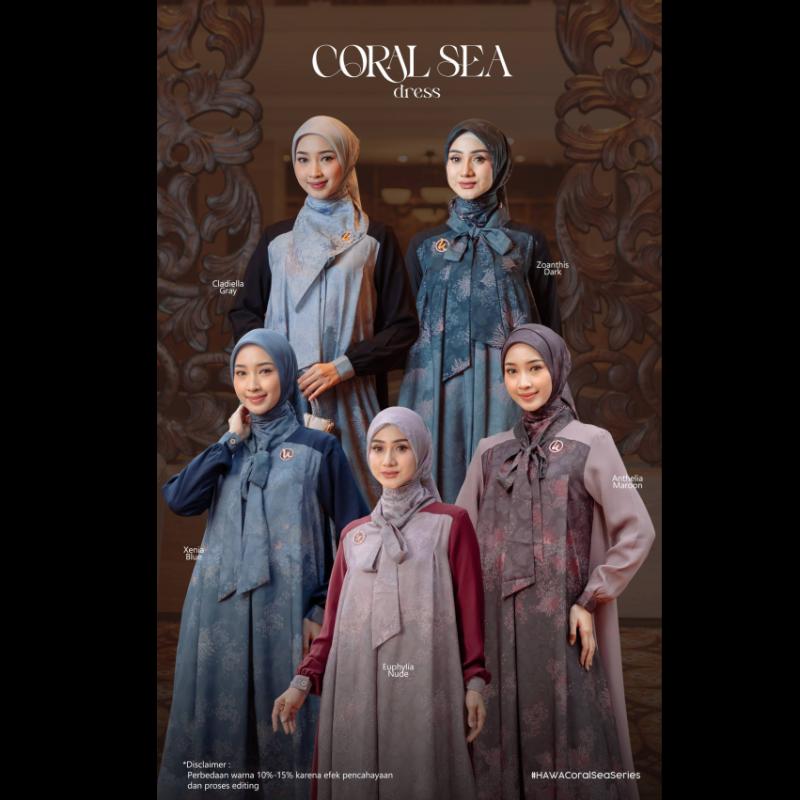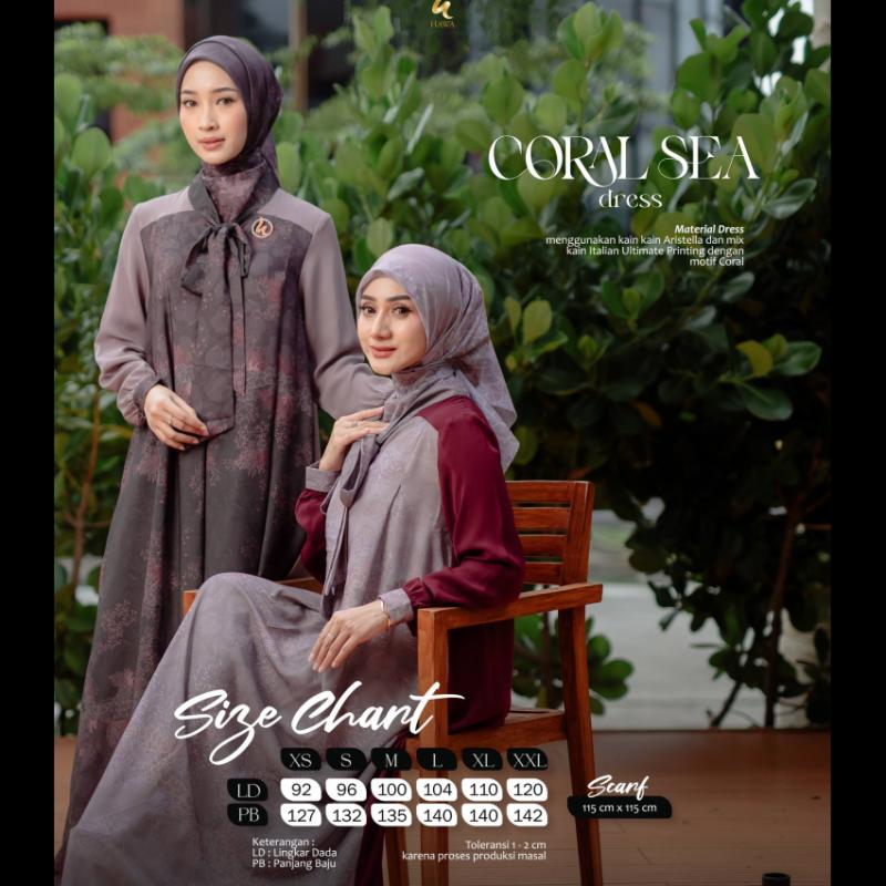 “CORAL SEA BASIC SERIES” by @hawa.thelabel Hawa kali ini mengeluarkan Coral Sea Basic Series, dengan desain dress yang nggak kalah cantik manawan Look nya terlihat simple namun terkesan elegan, cocok jadi bestie untuk menemani acara special kamu nih SPESIFIKASI - Material basic menggunakan kain Elghost Ultimate (Turunan kain Paulista) yang berkarakteristik halus, lembut dan flowly. Mix dengan kain Italian Ultimate Printing motif Coral dibagian tangan dan list depan - ?Long outer menggunakan kain Cerutty Babydoll Printing motif Coral dengan kancing mutiara dibagian atas untuk mengaitkan outer - ?Long outer bisa dilepas pasang menyesuaikan style (adjustable) - ?Model kerah seperti kemeja - ?Terdapat kancing signature Hawa dibagian dada (Busui Friendly) - ?Cuttingan dress loose - ?Kancing mutiara dibagian pergelangan tangan (Wudhu Friendly) - ?Saku disisi kanan dress - ?Terdapat Metal Tag Original HAWA *Scarf motif, menggunakan kain premium Voal dengan motif Printing Hawa *Scarf polos, menggunakan kain Voal Ultrafine Tersedia 5 pilihan Warna : * Anthelia Maroon * Cladiella Grey * ?Euphylia Nude * ?Xenia Blue * ?Zoanthis Dark Harga & Size Chart Dress *Terdapat pada flyer Disclaimer *Toleransi 2-3cm karena proses produksi massal *Perbedaan warna 10-20% karena efek lighting photoshoot & perbedaan layar gadget *Warna asli cenderung lebih gelap PO Cukup DP 50rb PO No cancel Untuk info & pemesanan segera hubungi mitra terdekat #NewSeriesbyHawa #CoralSeaBasic #CoralSeaBasicSeries #CoralSeaBasicSeriesbyHawa #DressPremium