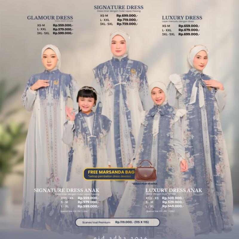 Simplicity is the keynote of all true elegance. Dress Glamour hadir untuk Luzzy Dear yang mengutamakan kenyamanan tanpa mengurangi esensi kemewahan. Potongan Simple Dress yang membiarkan Unique Motif Marsanda berbicara sendiri. Dilengkapi dengan Pearl Button Cuffs (kancing mutiara) di pergelangan tangan yang manis, serta Front Zipper yang praktis. It’s chic, it’s modern, it’s you. FREE MARSANDA HAND BAG Walk with grace, Luzzy Dear. Varian Luxury ini dirancang untuk menciptakan efek ethereal (seperti bidadari). Desain Integrated Layering (layer menyatu) memberikan kesan flowy yang dramatis namun tetap ringan. Statement point ada pada Shoulder Ruffle yang manis di pundak, mempertegas postur tubuh dengan lembut. Ditambah untaian Crystal & Pearl Beads yang menjuntai sepanjang dress, membuatmu terlihat jenjang dan stunning. Higlight : Flowy Layering & Shoulder Ruffle Statement. Details: Adjustable String pada layer & Premium Logo Tag. Vibe: Romantic & Graceful. Bahan: Korean Chiffon Premium with Soft Lining (Furing). FREE MARSANDA HAND BAG Untuk Luzzy Dear yang mencintai detail perfection, Signature Dress adalah jawabannya. Hadir dengan konsep 2-in-1 Design yang jenius. Outer dengan potongan Cheongsam Opening memberikan siluet klasik yang sophisticated, dihiasi taburan Crystal & Pearl Beads yang berkilau mewah di setiap gerakan. Detachable Outer (bisa dilepas-pasang). Kenakan lengkap untuk Royal Look, atau lepas outernya untuk Simple Elegance. Details: Adjustable Waist Belt, Hidden Pocket, & Premium Logo Tag. Vibe: Majestic & Classy. Bahan: Korean Chiffon Premium with Soft Lining (Furing). Detachable Outer (bisa dilepas-pasang). Kenakan lengkap untuk Royal Look, atau lepas outernya untuk Simple Elegance. Details: Adjustable Waist Belt, Hidden Pocket, & Premium Logo Tag. Vibe: Majestic & Classy. FREE MARSANDA HAND BAG Untuk pasangan Luzzy Dear, kami hadirkan definisi ketampanan yang hakiki. Koko Marsanda dirancang dengan Shanghai Collar dan Hidden Button untuk tampilan yang clean dan rapi. Detail Luzzy Embroidery (bordir) di saku menjadi tanda kualitas yang eksklusif. Tersedia dalam Long Sleeve dengan Double Button Cuff untuk kesan formal, dan Short Sleeve untuk gaya yang lebih relaxed. Higlight : Modern Fit & Clean Look. Vibe: Dashing & Authoritative. Bahan: Koko: Sanpanama Premium (Serat kokoh, rapi, antikusut, namun tetep Breathable